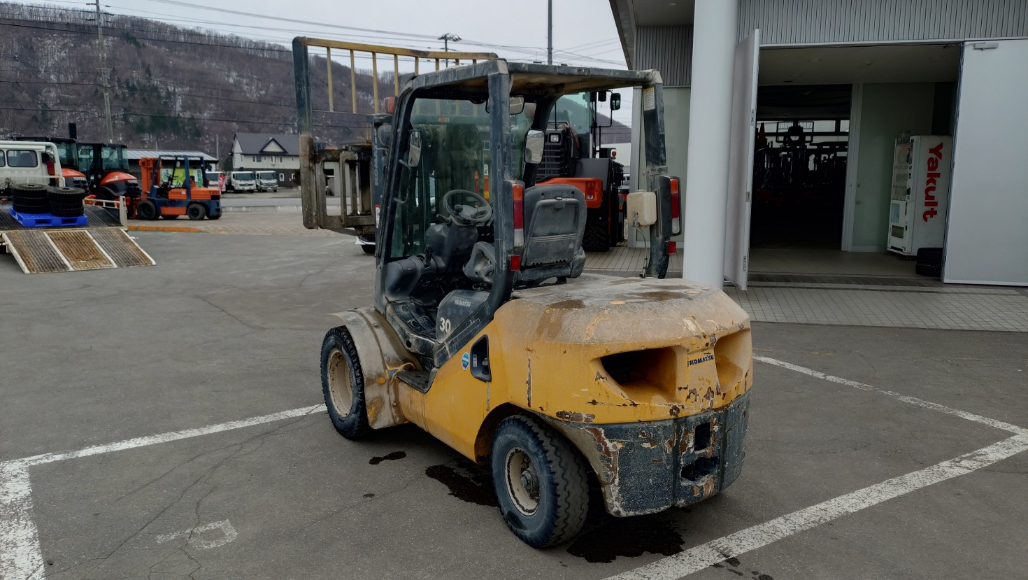 サイドシフト付で簡単作業。天井の低い場所や高所作業も可能な3段マスト。